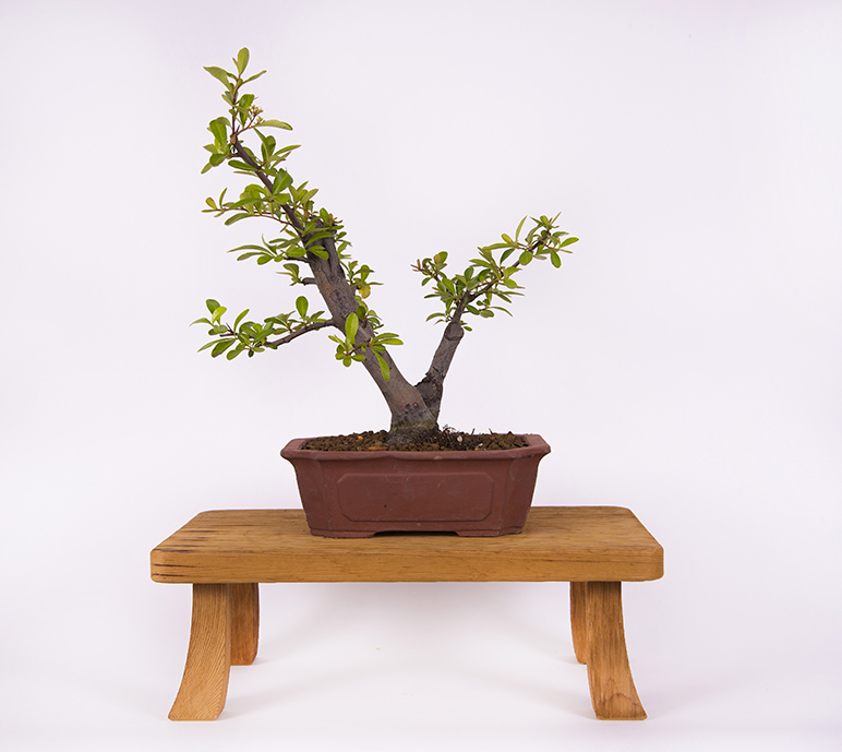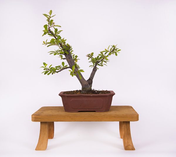 Arbuste de la famille des rosacées de caractère vivace ou semi-vivace et très résistante. Le tronc est brun grisâtre, avec des branches épineuses, des feuilles coriaces, dentées, lancéolates, alternant et brillantes sur le faisceau. Ses fleurs sont blanches, petites et très abondantes. Les fruits peuvent être rouges, oranges ou jaunes; restent sur les branches pendant l’hiver et nourrissent de nombreux oiseaux. Il s’adapte à de nombreux styles, le plus commun étant le droit informel (Moyogi), le battu par les vents (Fukinagashi) et semi-cascade (Han-Kengai).