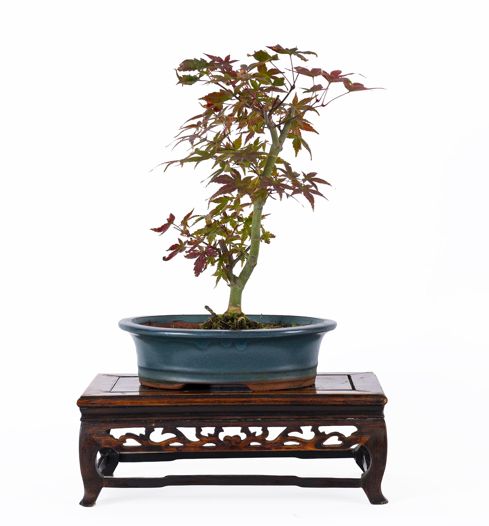 Deciduous shrub reaching heights of 10 meters. The leaves are palmed, with 5-7 lobes, delicate and with very bright red colors in autumn. The Deshojo variety has an impressive carmine-red sprouting. It’s the deciduous bonsai paradigm. The most common styles are the curved informal upright (Moyogi), group planting (Yose-Uye) and semi-cascade (Han-Kengai). Protect from the midday sun in summer.