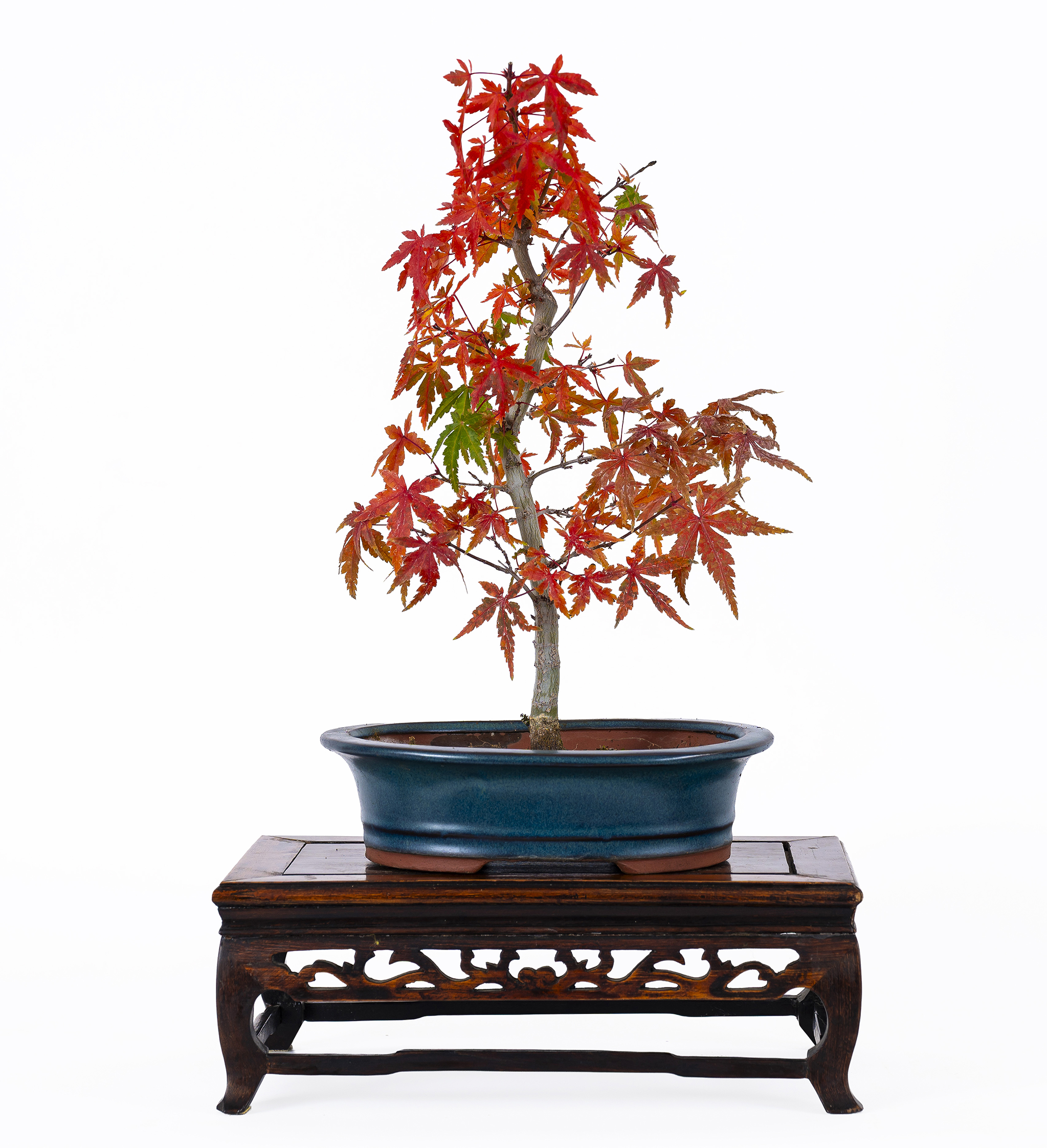 Deciduous shrub reaching heights of 10 meters. The leaves are palmed, with 5-7 lobes, delicate and with very bright red colors in autumn.  It’s the deciduous bonsai paradigm. The most common styles are the curved informal upright (Moyogi), group planting (Yose-Uye) and semi-cascade (Han-Kengai). Protect from the midday sun in summer.
