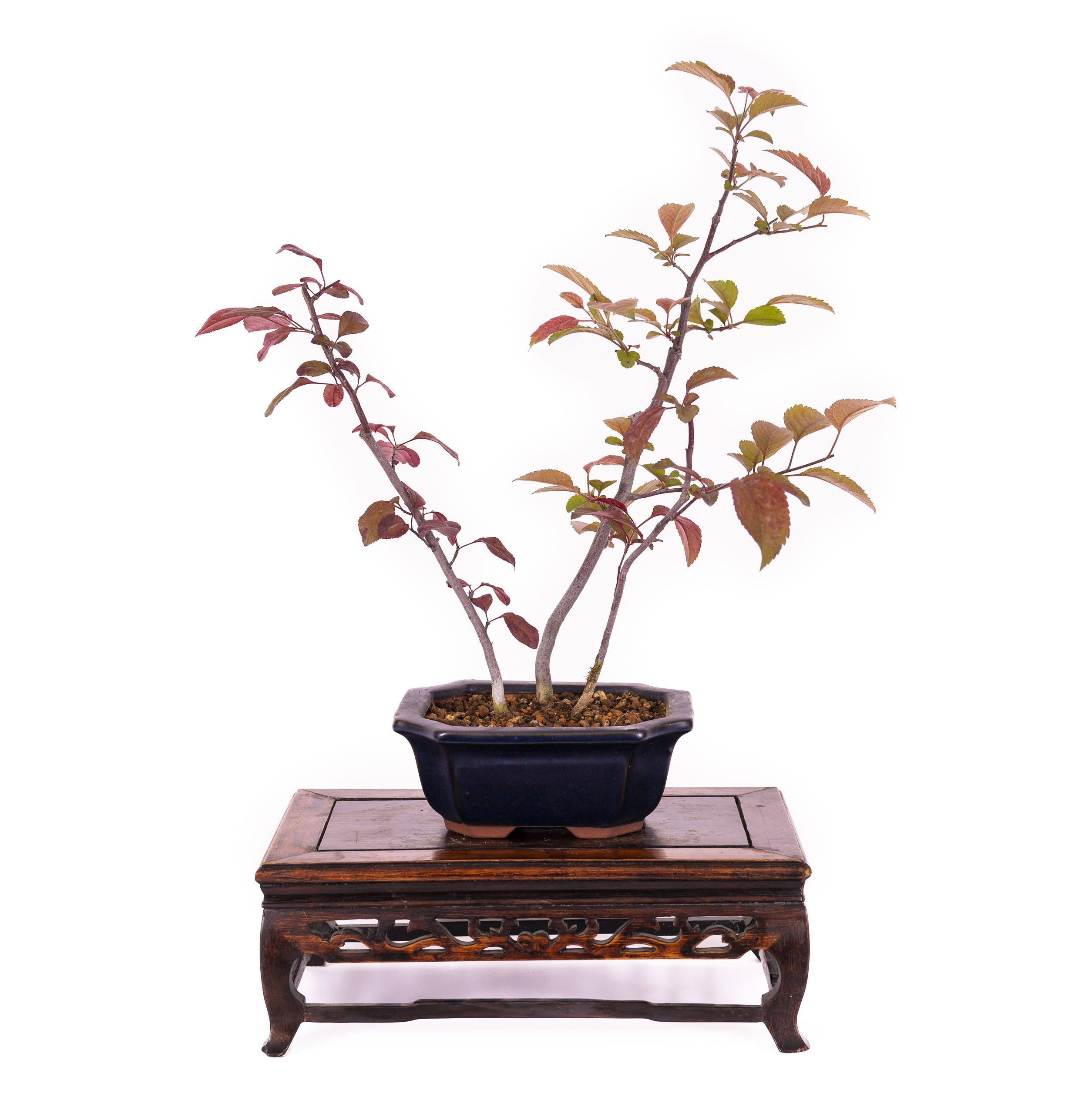 Tree of the Rosaceae family, native to Japan. It can be a wild species or a hybrid of Malus sieboldii x Malus baccata. It is a small, rounded-crowned tree. The flowers are white pink or red and the yellow or red fruit grows in clusters and is about 1 cm in diameter. The most common style is the curved informal upright (Moyogi).