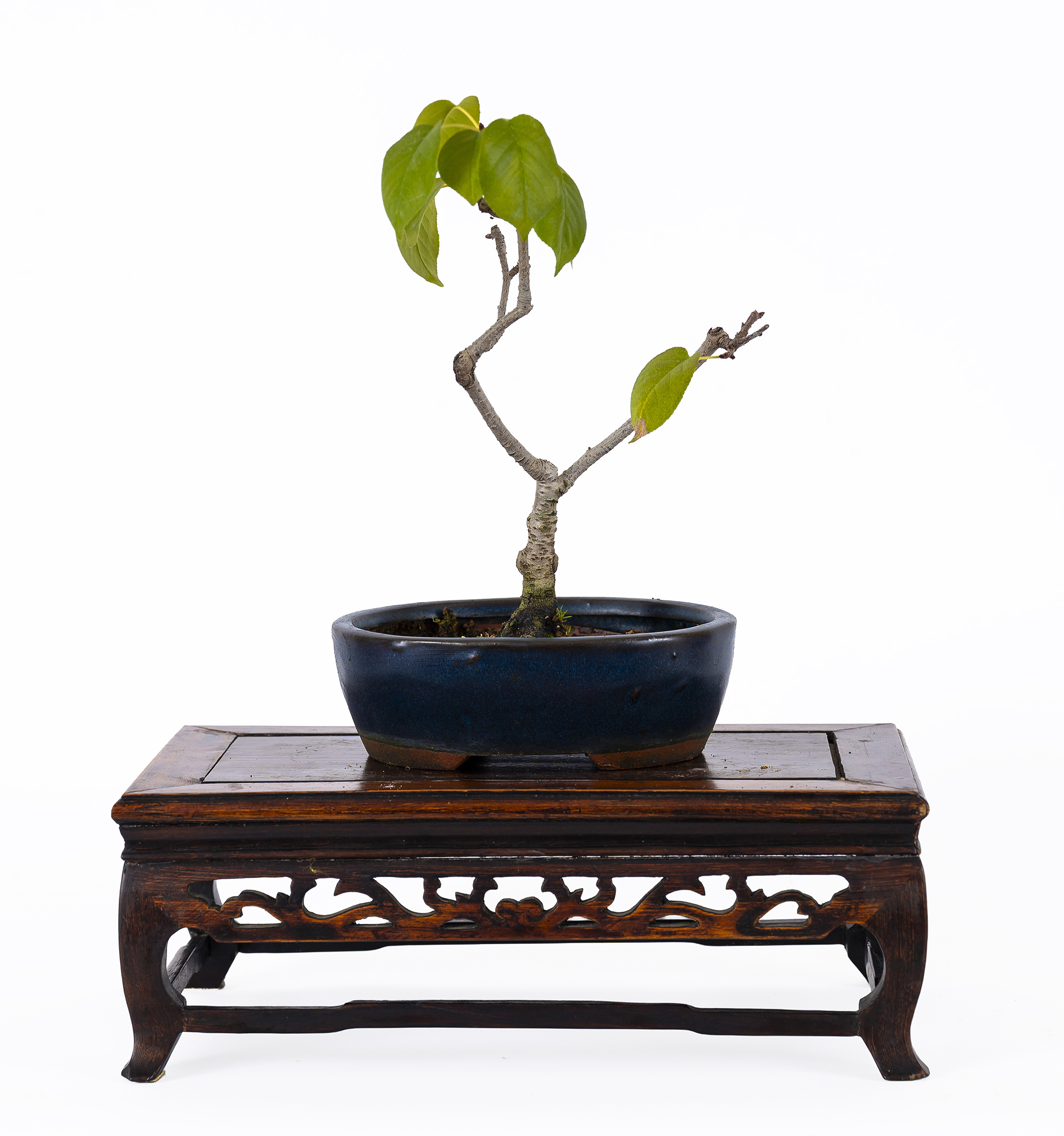 Deciduous shrub up to 5 m high in greyish brown bark. Heart shaped leaves, white flowers and black fruits. It has very interesting dead woods. The most common styles are the curved informal upright (Moyogi), slant (Shakan), wind swept (Fukinagashi) and semi-cascade (Han-Kengai).