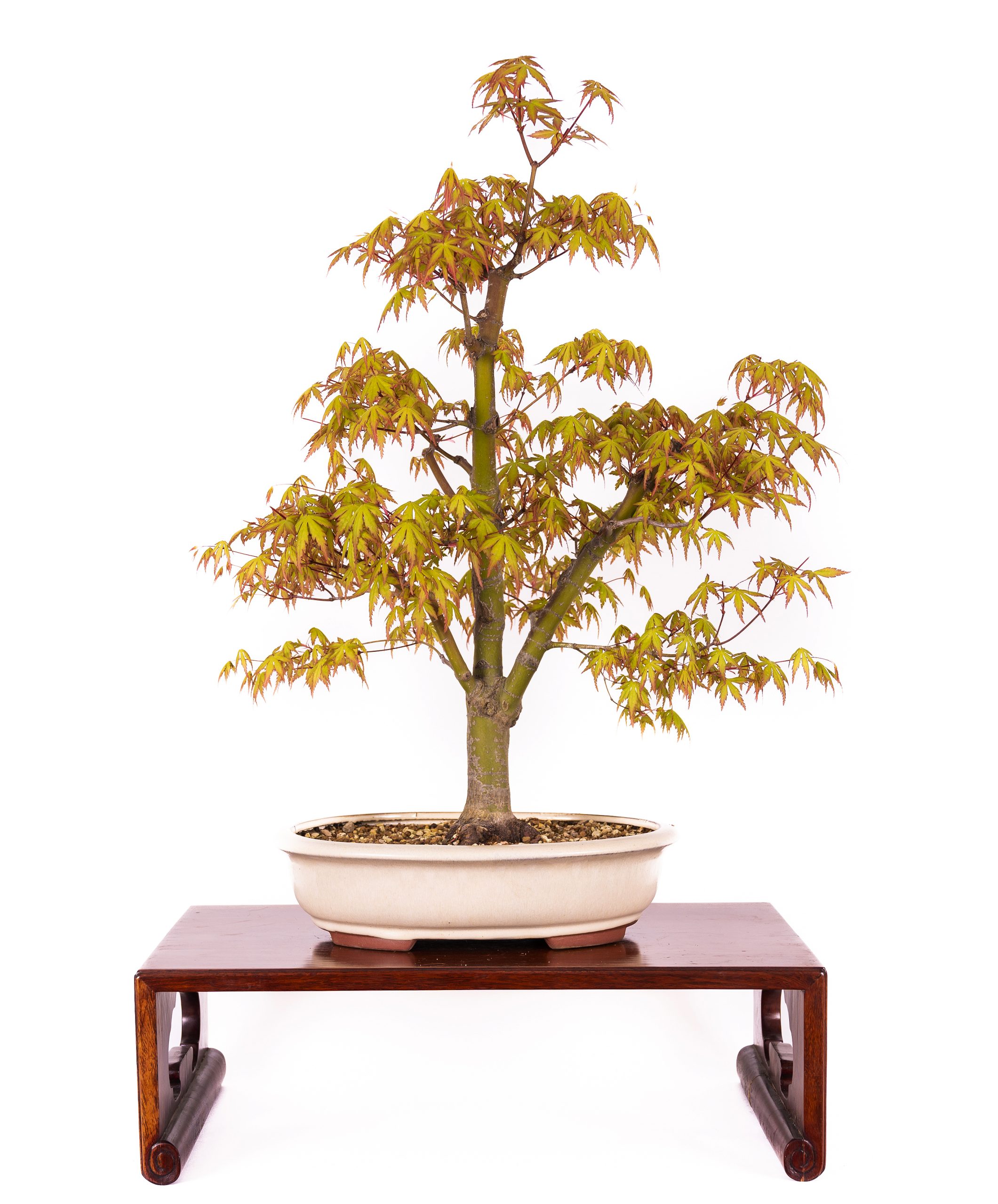 Arbuste à feuilles caduques atteignant des hauteurs de 10 mètres. Les feuilles sont palmées, avec 5-7 lobes, délicates et avec des couleurs rouges très vives en automne. C’est le paradigme du bonsaï à feuilles caduques. Les styles les plus courants sont le droit informel (Moyogi), les forêts (Yose-Uye) et la semi-cascade (Han-Kengai). Protégez-les du soleil de midi en été