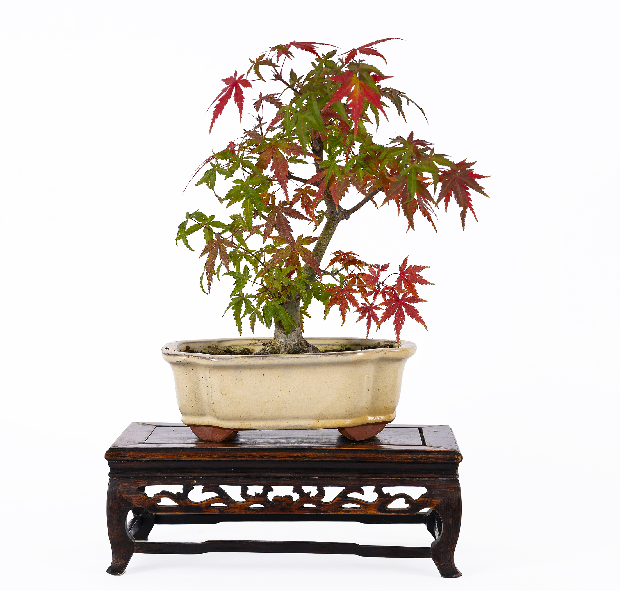Arbuste à feuilles caduques atteignant des hauteurs de 10 mètres. Les feuilles sont palmées, avec 5-7 lobes, délicates et avec des couleurs rouges très vives en automne. C’est le paradigme du bonsaï à feuilles caduques. Les styles les plus courants sont le droit informel (Moyogi), les forêt (Yose-Uye) et la semi-cascade (Han-Kengai). Protégez-les du soleil de midi en été.