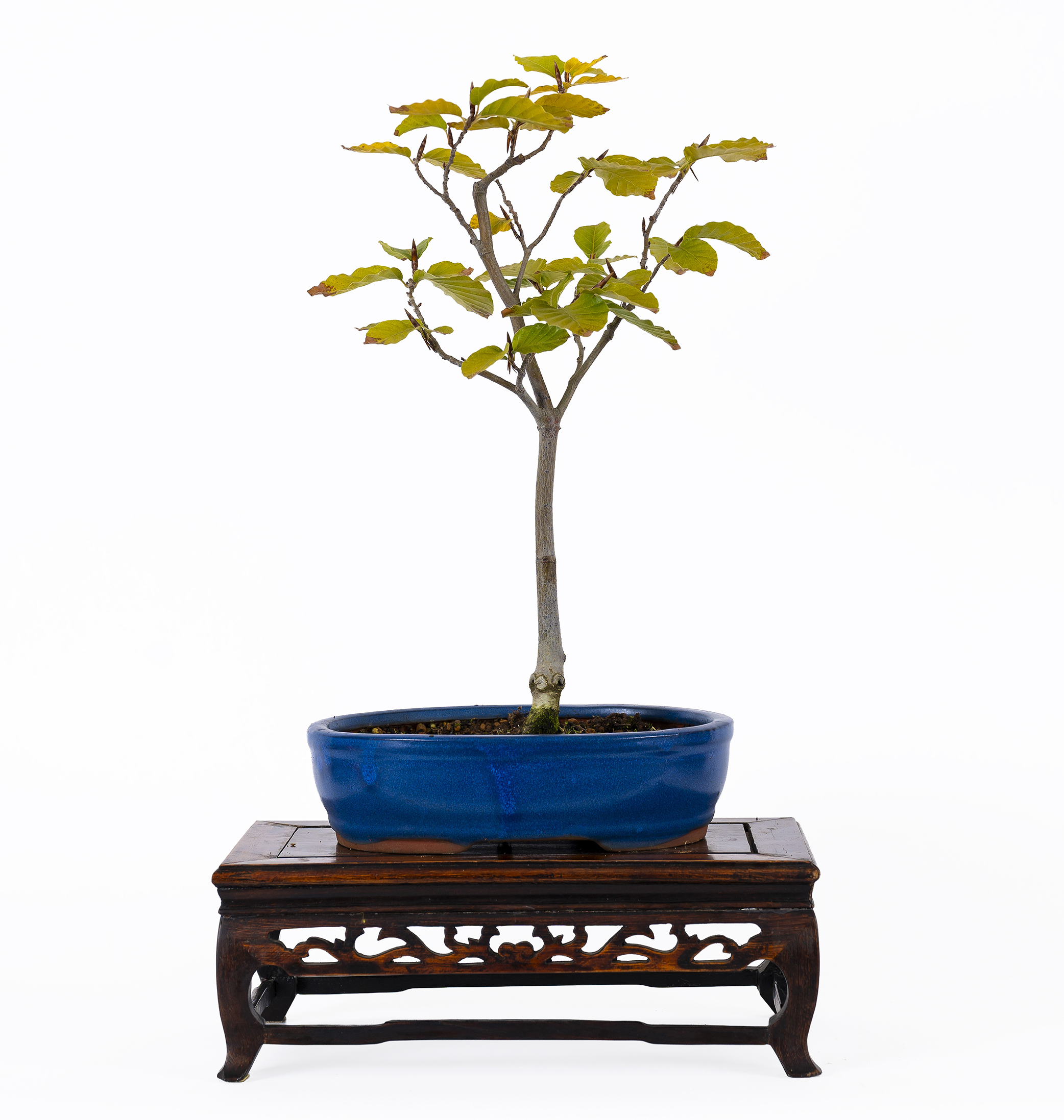 Arbre avec une longévité proche de 250 ans et une croissance lente pouvant atteindre 35-40 m, avec un tronc droit et non ramifié, et une couronne ovale dans son tiers supérieur. Ses feuilles ovales sont tendres et vert vif à l’état jeune, devenant plus foncées et quelque peu coriaces à maturité. Il a besoin de sols frais et fertiles, bien que les hêtres les plus riches poussent sur des roches calcaires, et il a besoin de pluies abondantes et d’humidité atmosphérique. Les styles les plus courants sont le balai (Hokidachi) et le vertical informel (Moyogi).