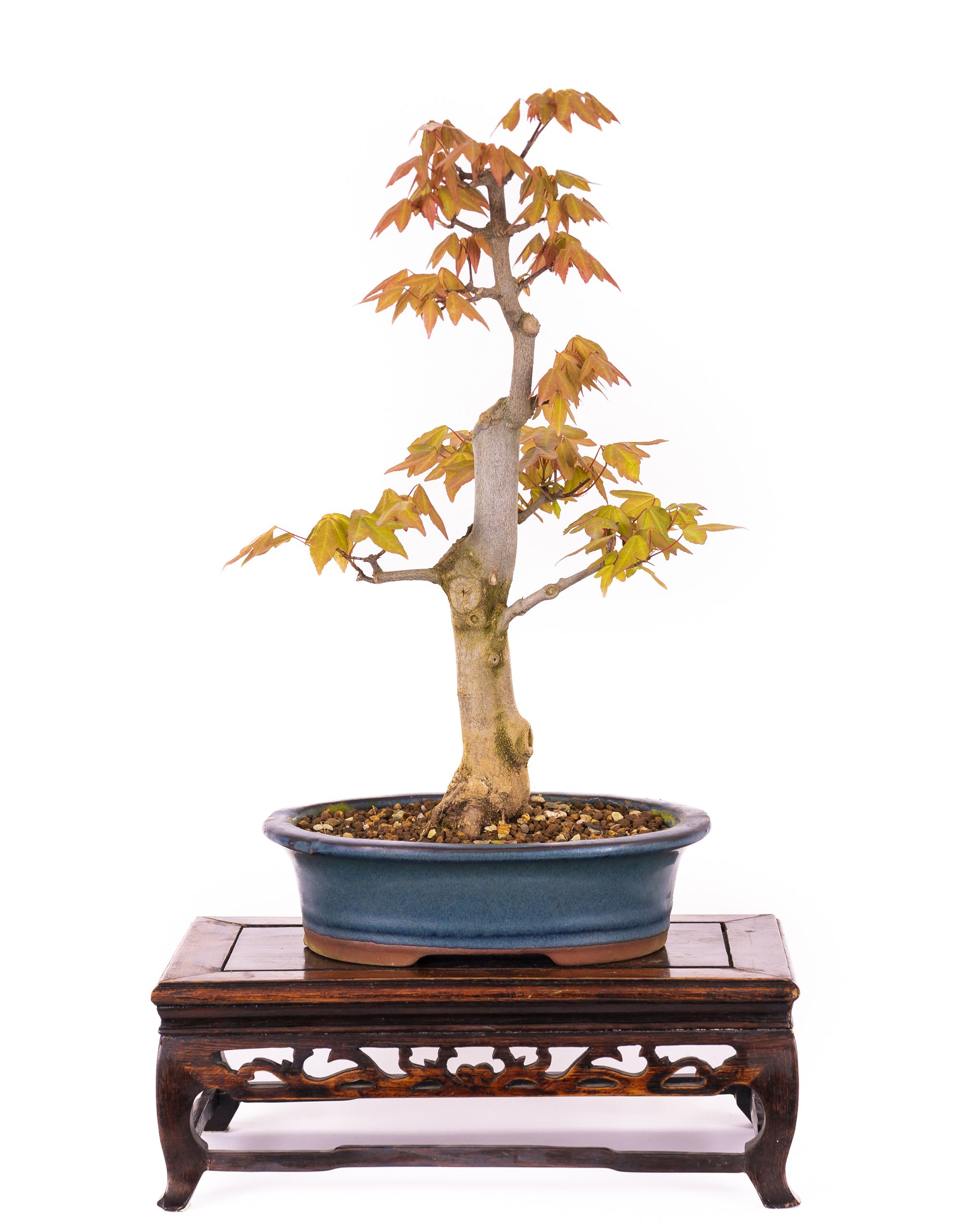Árbol caducifolio de talla media, corteza grisacea y hojas trilobadas. Muy apreciado en bonsai por su robustez y belleza. Se adapta a cualquier estilo, aunque el más común es el vertical informal (Moyogi); también se emplea para plantaciones de grupo (Yose-Uye).