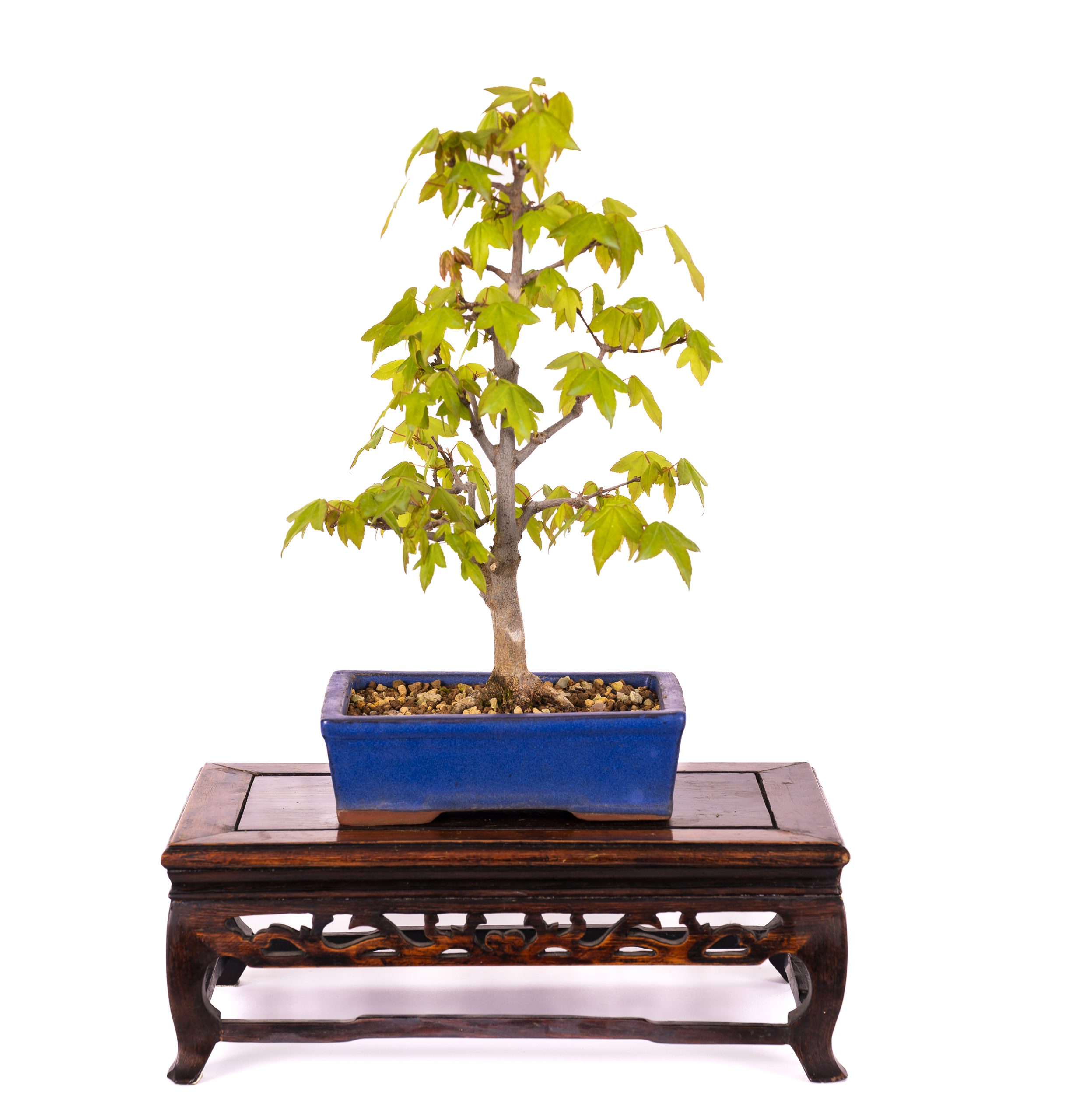 Árbol caducifolio de talla media, corteza grisacea y hojas trilobadas. Muy apreciado en bonsai por su robustez y belleza. Se adapta a cualquier estilo, aunque el más común es el vertical informal (Moyogi); también se emplea para plantaciones de grupo (Yose-Uye).