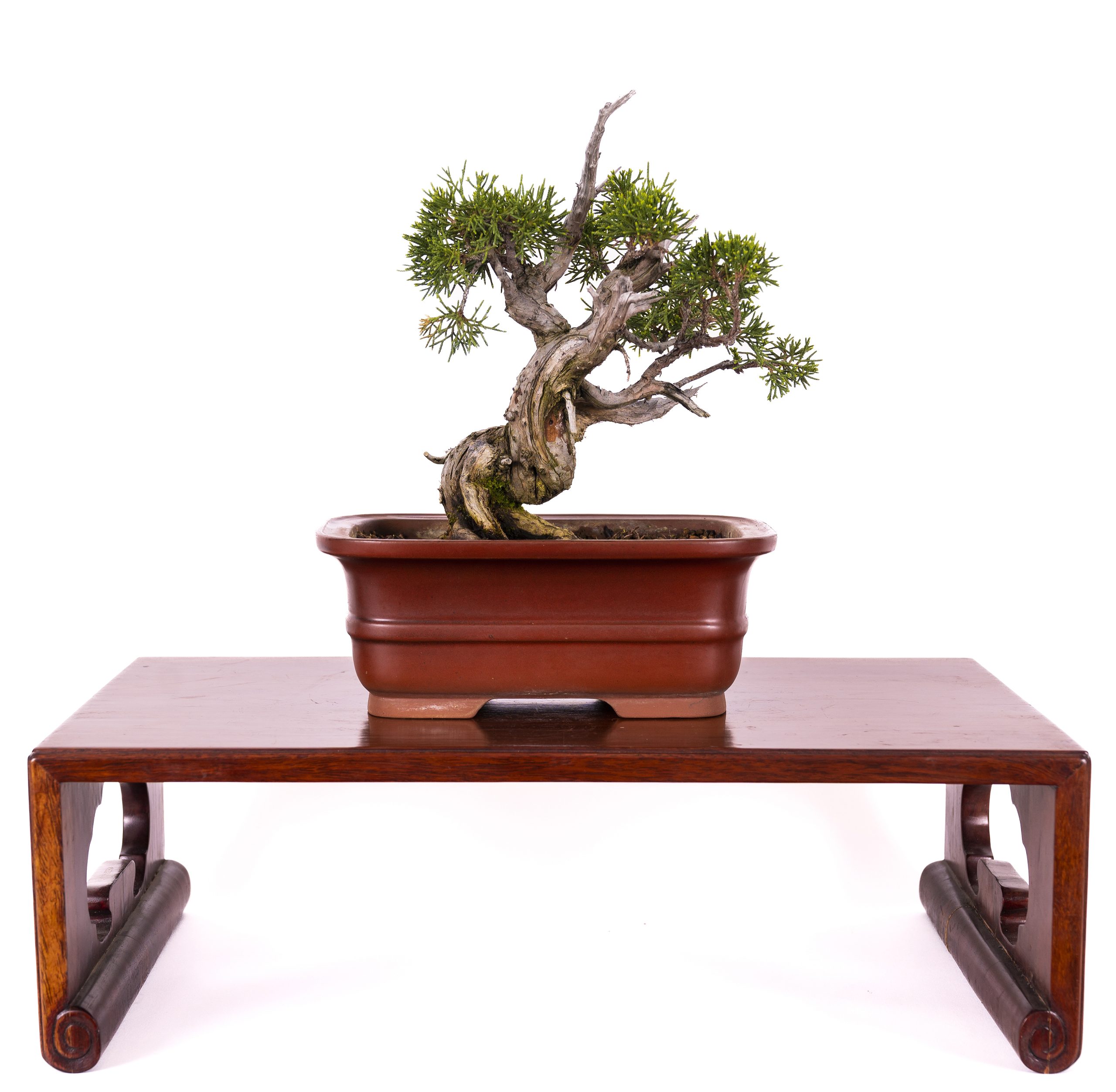 Arbusto perenne de la familia de los cipreses que crece naturalmente en zonas calizas. Su encanto radica en la combinación de la madera muerta con venas vivas retorcidas, dando la impresión de un árbol que ha sobrevivido a numerosas catástrofes naturales. Los estilos más comunes son el vertical informal (Moyogi), enraizado en roca (Ishizuke), azotado por el viento (Fukinagashi) y semi-cascada (Han-Kengai).
