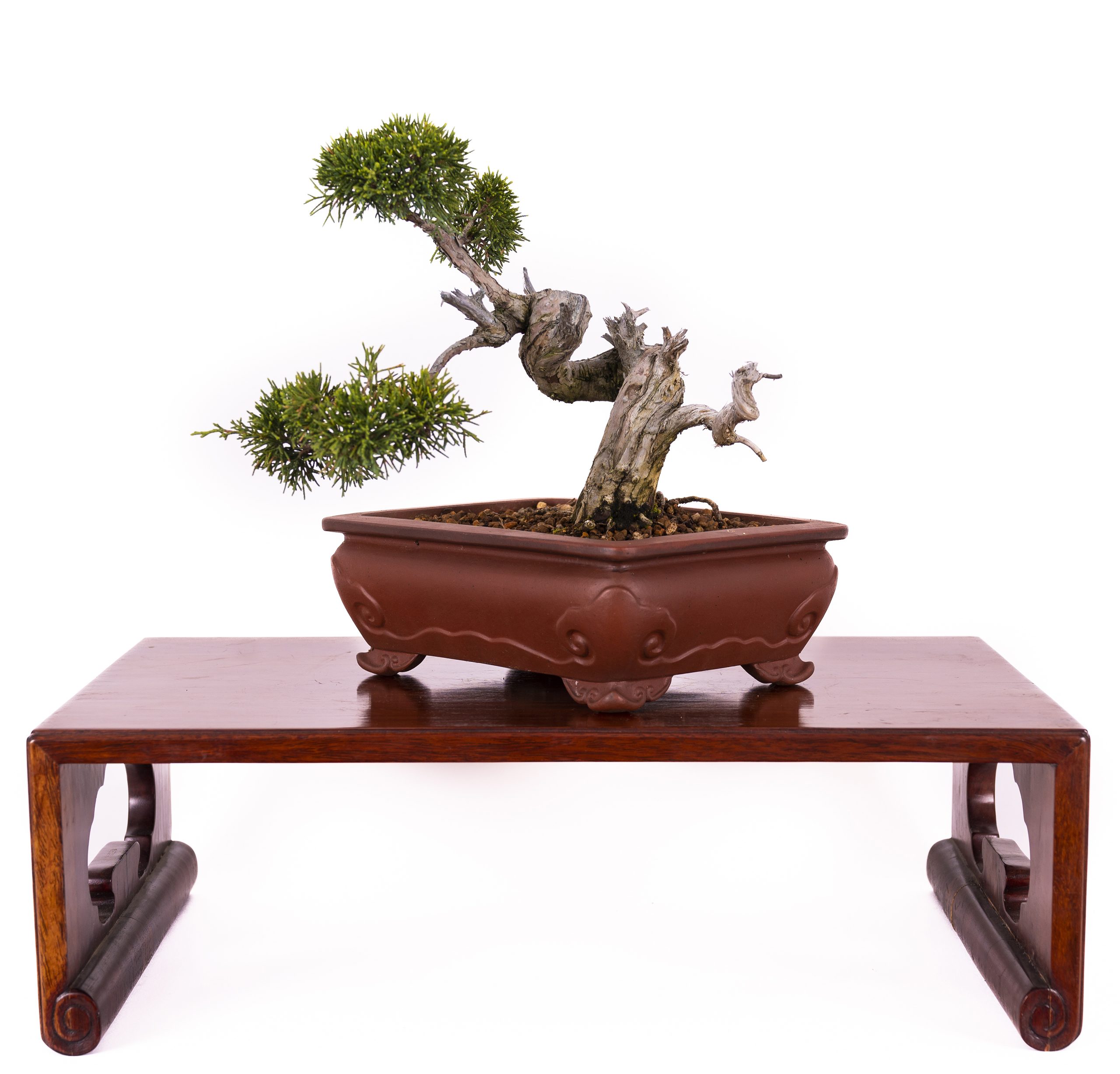 Arbusto perenne de la familia de los cipreses que crece naturalmente en zonas calizas. Su encanto radica en la combinación de la madera muerta con venas vivas retorcidas, dando la impresión de un árbol que ha sobrevivido a numerosas catástrofes naturales. Los estilos más comunes son el vertical informal (Moyogi), enraizado en roca (Ishizuke), azotado por el viento (Fukinagashi) y semi-cascada (Han-Kengai).