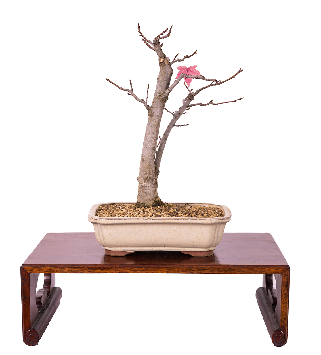Árbol caducifolio de hasta 30 m de altura. El tronco joven y las ramas presentan unas excrecencias longitudinales de corteza, tipo corcho. Las hojas, de color verde oscuro son palmeadas, parecidas a los de los arces, y se tornan naranja, rojo y púrpura en otoño. Es una especie monoica, con inflorescencias masculinas o femeninas que aparecen al mismo tiempo que las hojas. Es nativo de la costa Este de Estados Unidos pero se cultiva en todo el mundo. El estilo más común es el vertical informal (Moyogi).