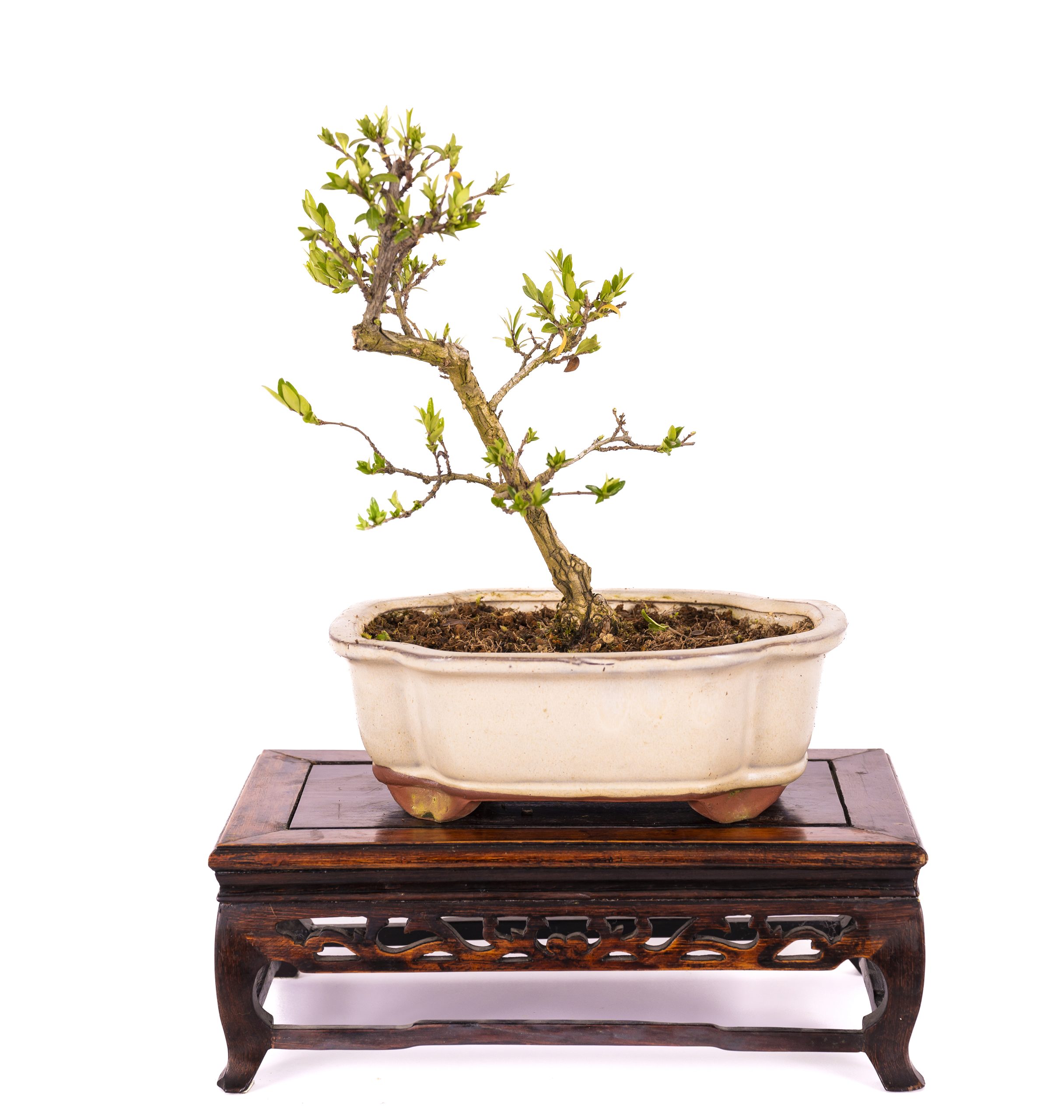 Es un arbusto perenne, procedente de China, del género de las madreselvas. De crecimiento rápido, tolera bien la poda. Sus hojas son pequeñas y de un bonito color verde obscuro; sus flores son de color blanco-crema. El estilo más común es el vertical informal (Moyogi)