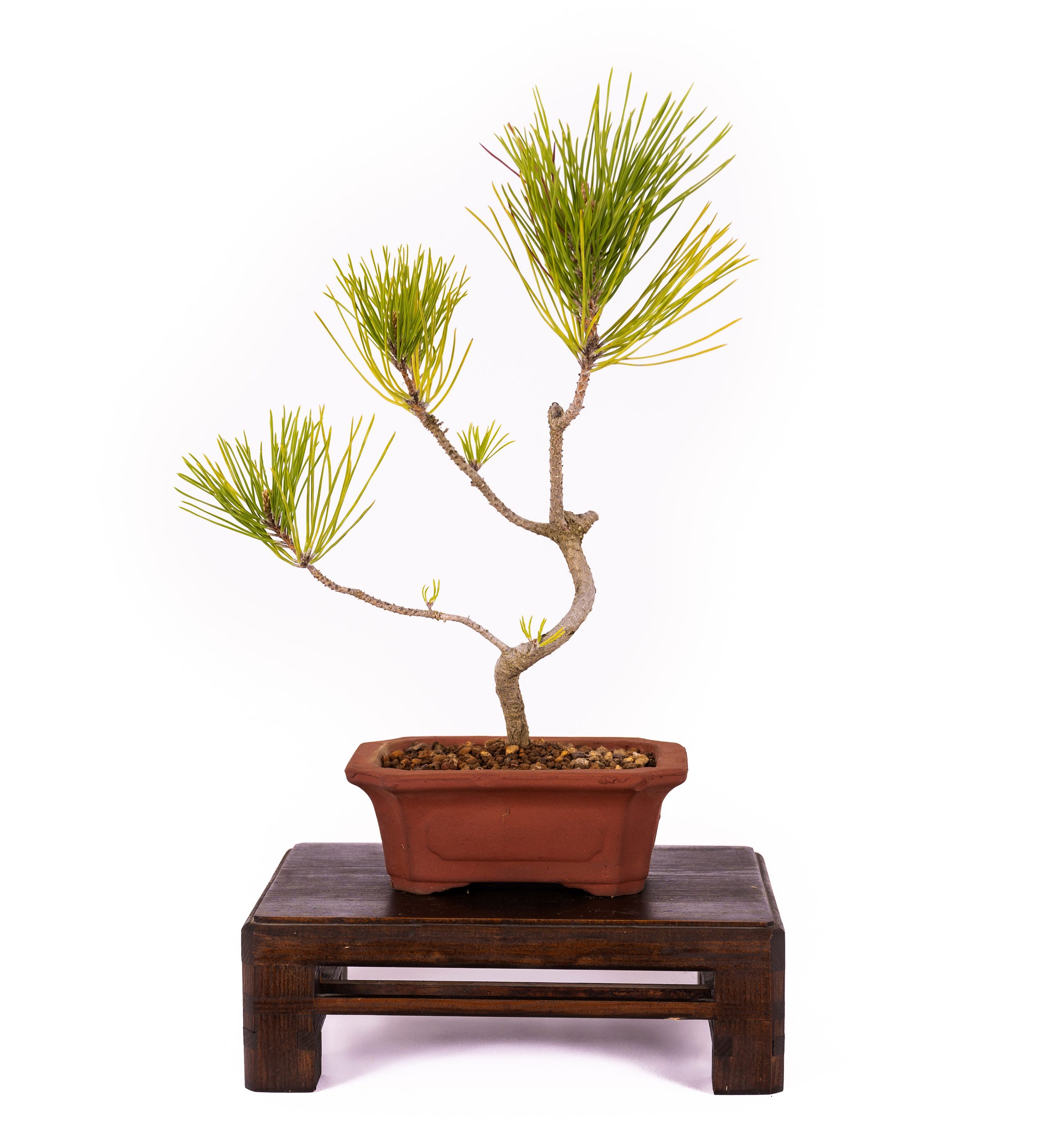 Su altura es de 20–35 m. Las hojas son aciculares, de 8–12 cm de largo, con dos por cada fascículo. Está estrechamente emparentado con el pino silvestre, siendo difrerente en las hojas más largas y delgadas que son de un verde medio sin el tono azul glauco del pino silvestre. Su área de distribución incluye Japón, Corea, noreste de China y el extremo sudeste de Rusia. Este pino se ha convertido en un popular árbol ornamental y tiene un papel importante en el jardín japonés clásico. El pino rojo japonés prefiere pleno sol en suelos ligeramente ácidos y bien drenados. Los estilos más comunes son el vertical informal (Moyogi) y el literati (bunjin).