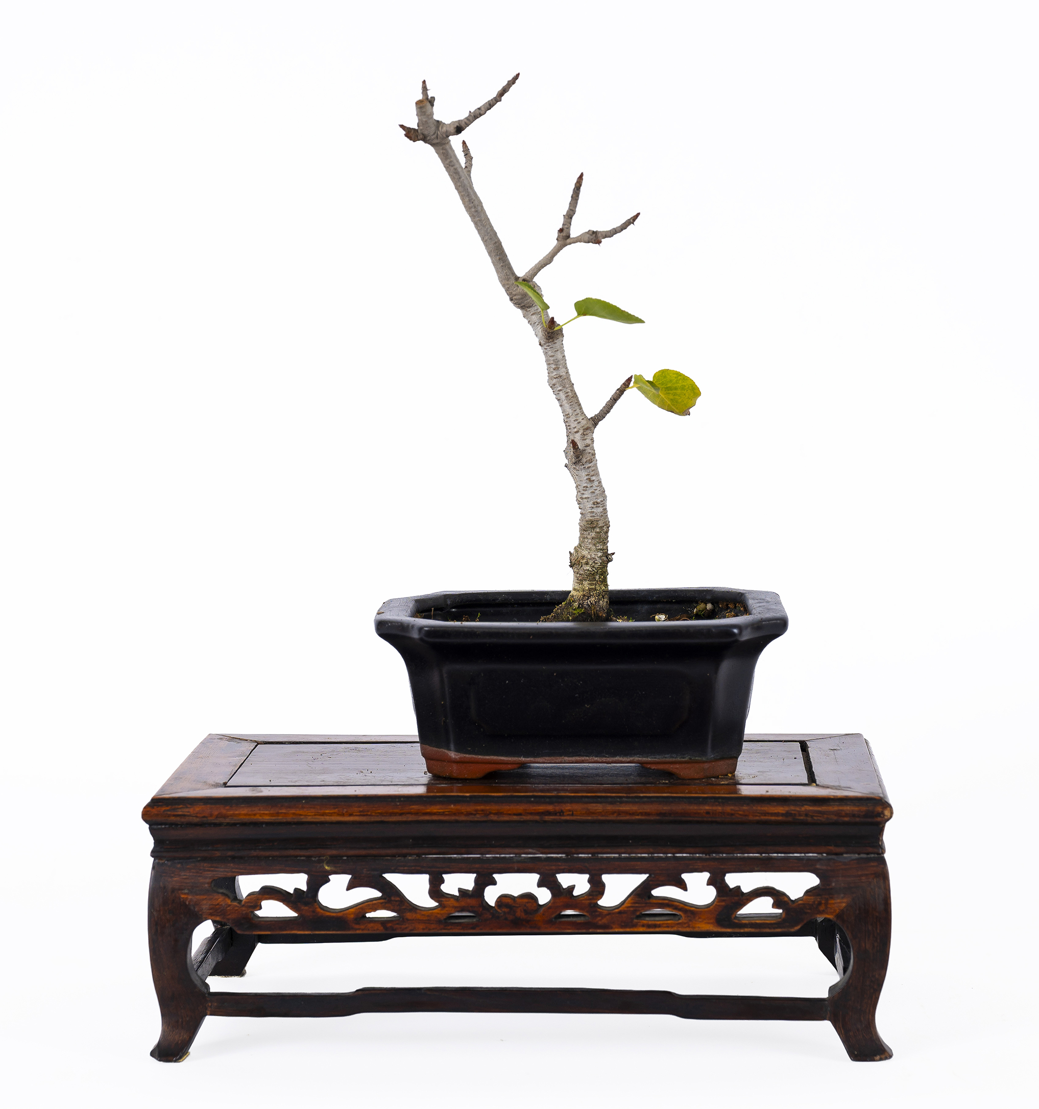 Arbusto caducifolio de hasta 5 m de altura de corteza pardo grisacea. Hojas acorazonadas, flores blancas y frutos negros. Presenta maderas muertas muy interesantes. Los estilos más comunes son el vertical informal (Moyogi), inclinado ((Shakan), barrido por el viento (Fukinagashi) y semi-cascada (Han-Kengai).