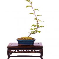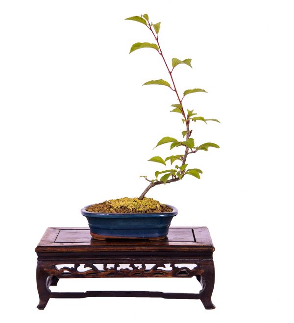 ‘Okame’ es un árbol caducifolio pequeño con una copa erguida y redondeada. Es una variedad hibrida del Prunus incisa como madre y Prunus campanulata como padre. Tiene hojas simples alternas de 2 a 5 cm de largo que se vuelven de color rojo bronceado a naranja brillante a rojo en el otoño. Su corteza pulida de color marrón rojizo tiene lenticelas horizontales prominentes. Florece profusamente antes que otros prunus con flores rosadas, de 5 pétalos. Los estilos más comunes son el vertical informal (Moyogi), inclinado ((Shakan), barrido por el viento (Fukinagashi) y semi-cascada (Han-Kengai).