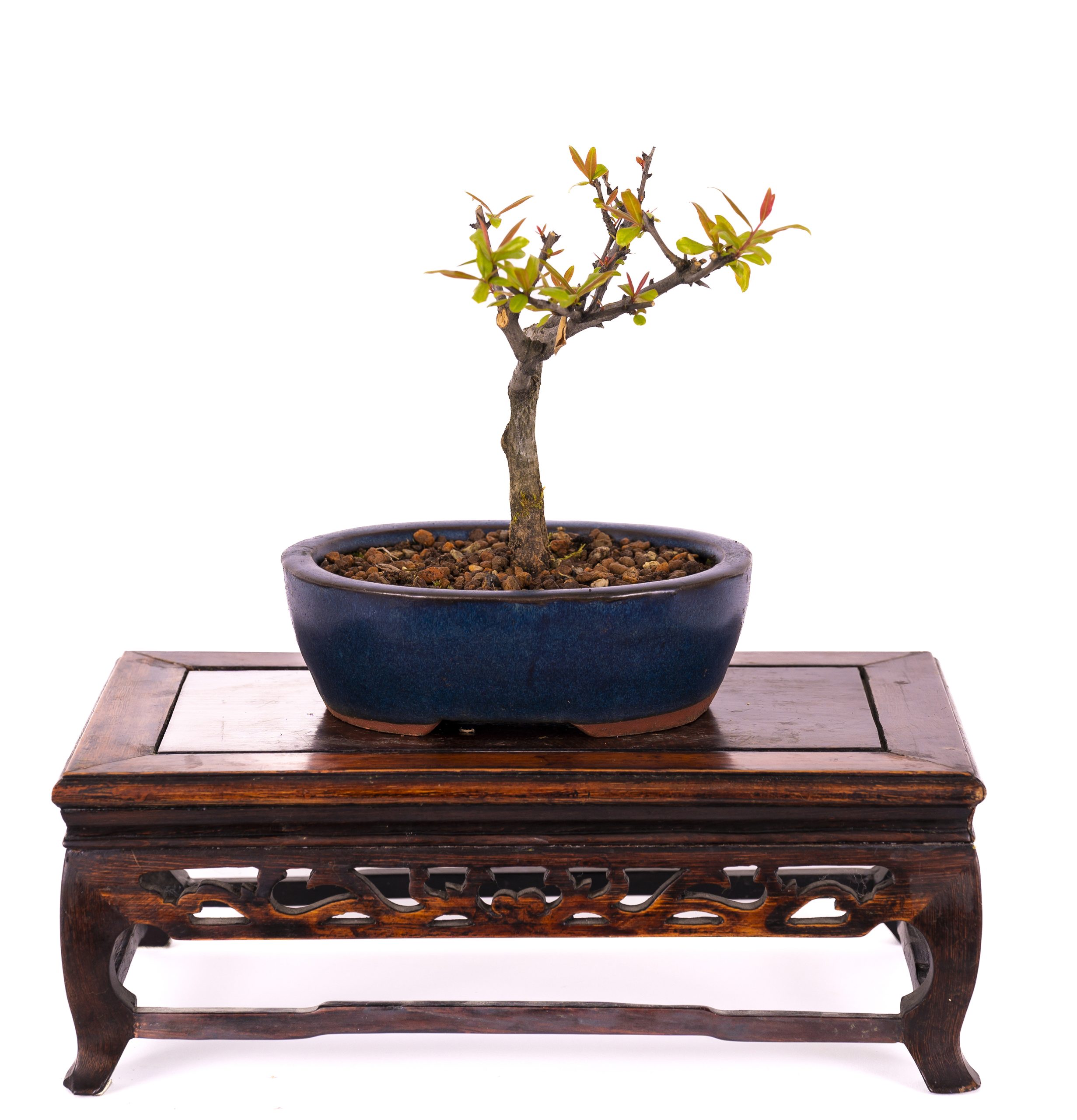 El tronco crece naturalmente de forma retorcida (Nejican) y en sus ramas jóvenes crecen espinas. Sus flores rojas de primavera dan frutos que se abren en otoño para enseñar sus granos rojos. Los estilos más comunes son el vertical informal (Moyogi), multitronco (Kabudachi), y el inclinado (Shakan)
