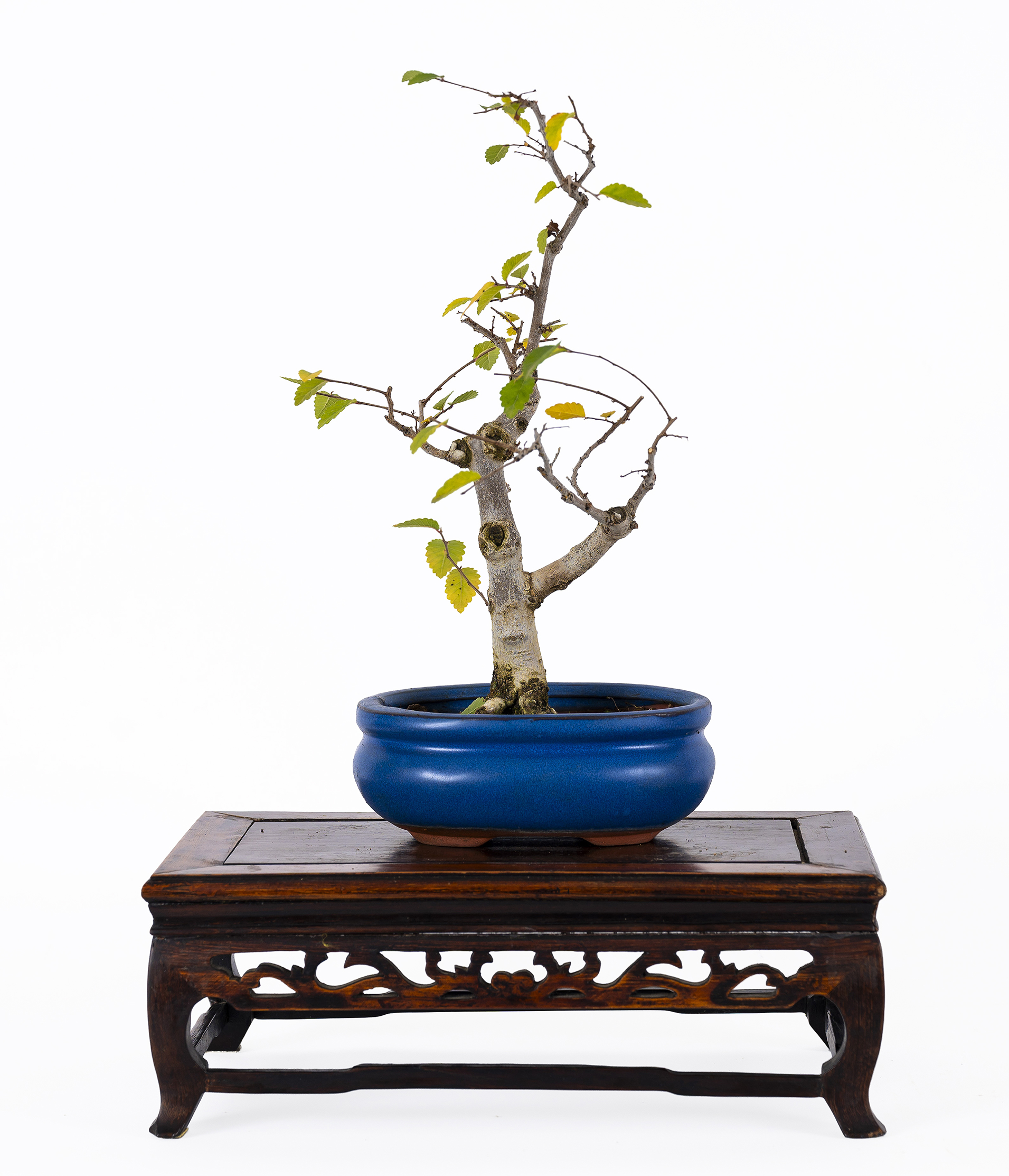 Árbol de porte mediano, caducifolio aunque si se mantiene a temperatura templada en invierno se comporta como semiperenne. En su juventud presenta un tronco de color gris y corteza fina, pero al madurar se desprenden escamas de la corteza. Sus hojas son pequeñas, simples, alternas, ovaladas, dentadas y terminadas en punta; de color verde brillante que toma tonos amarillos y naranja en otoño. El estilo más común es el vertical informal (Moyogi), aunque se adapta a muchos otros, como el enraizado en roca (Ishizuke).